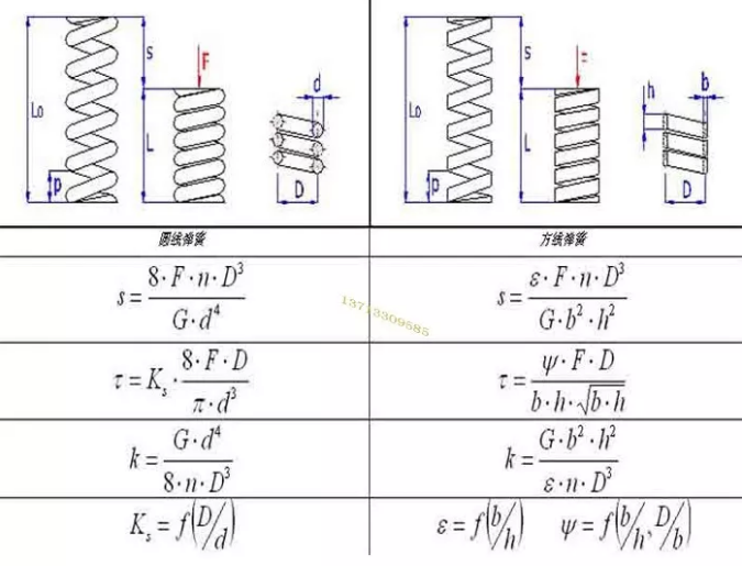 壓縮彈簧已知自由長度和剛度時,某一工作長度負荷的計算公式如下: