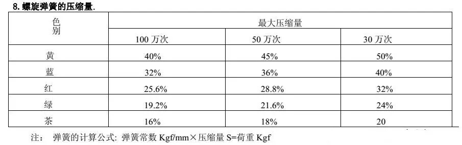 例:模具彈簧自由長度100,壓縮后的極限值是75,那模具彈簧的極限壓縮量就是25。而其壓縮系數就等于25%。